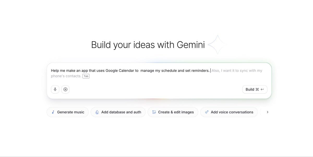Start typing something half-formed in AI Studio, hit tab, Gemini completes the thought.