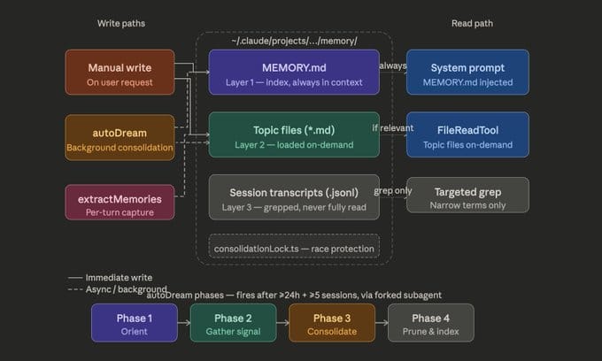 What stood out wasn’t just the leak, but what it revealed. Claude’s memory system is tightly controlled. It doesn’t try to store everything. Instead, it uses a layered approach—lightweight indexing, on-demand retrieval, and continuous background rewriting to clean and refine memory.